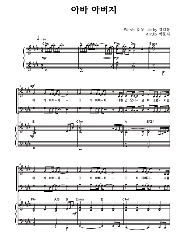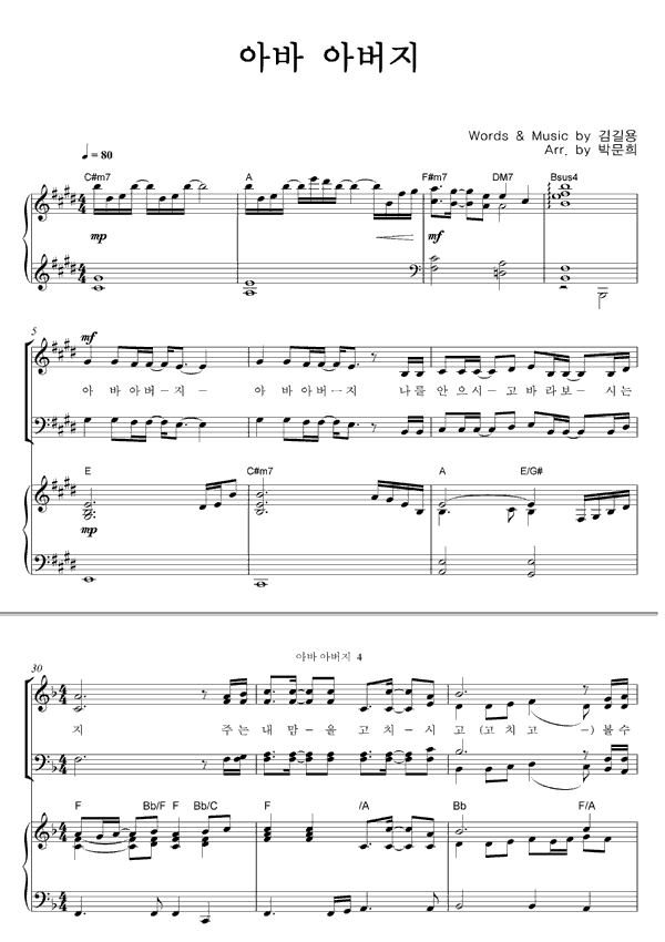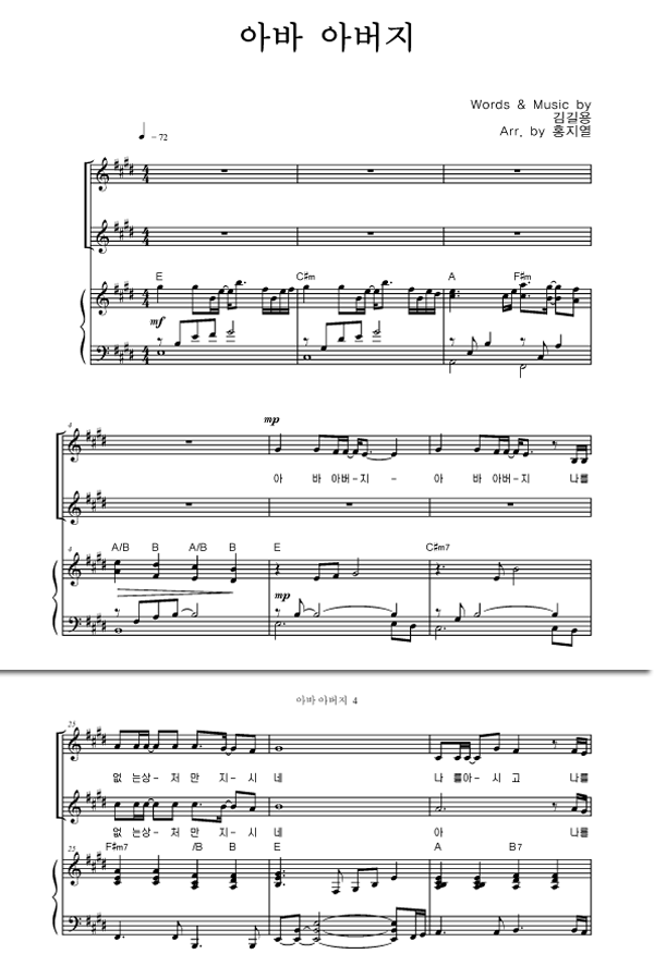 | 아바 아버지 | 성가 2부 + 피아노 반주 |