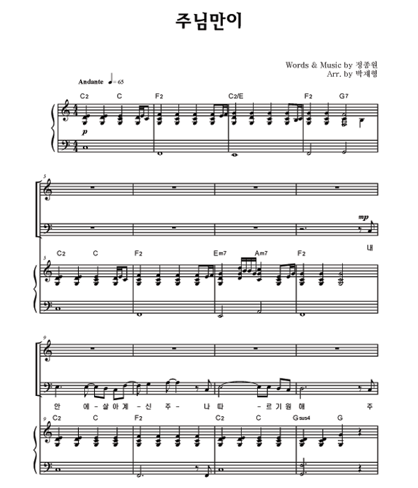 | 주님만이 | 성가 2부 + 피아노 반주 |