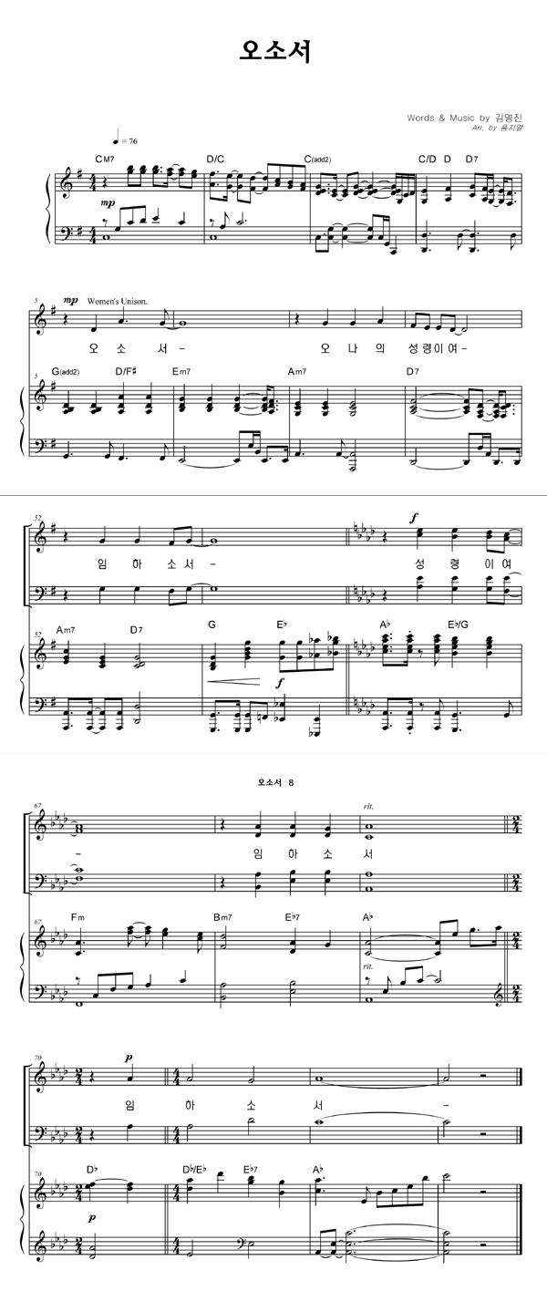 | 오소서 | 성가 4부 + 피아노 반주 |