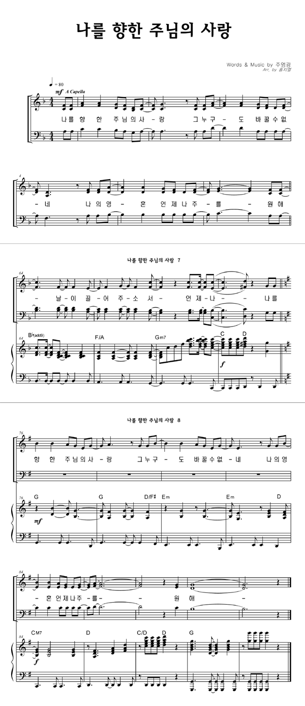 '나를 향한 주님의 사랑' 의 다른 악보형식
