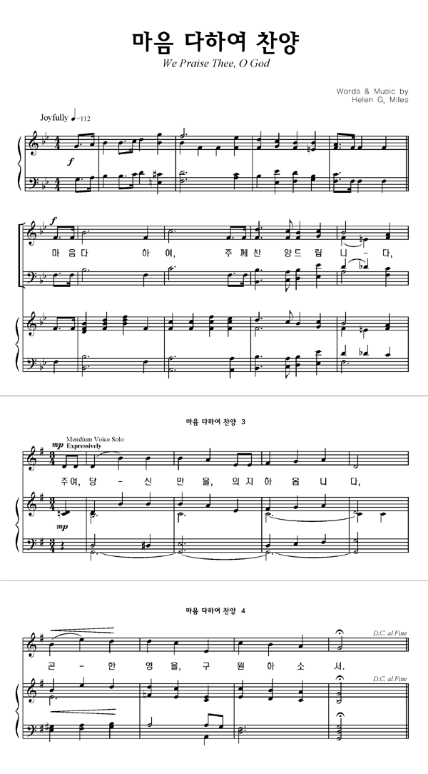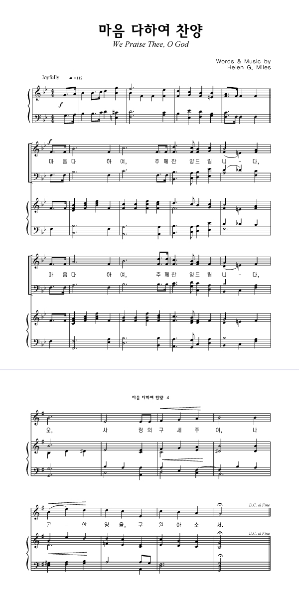 '마음 다하여 찬양' 의 다른 악보형식