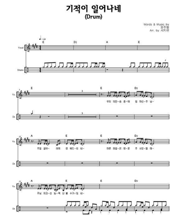 '기적이 일어나네' 의 다른 악보형식