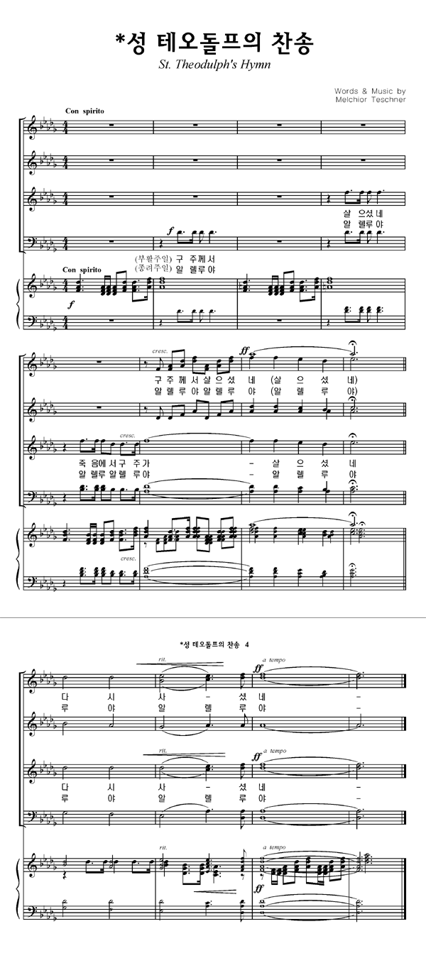 '성 테오돌프의 찬송' 의 다른 악보형식