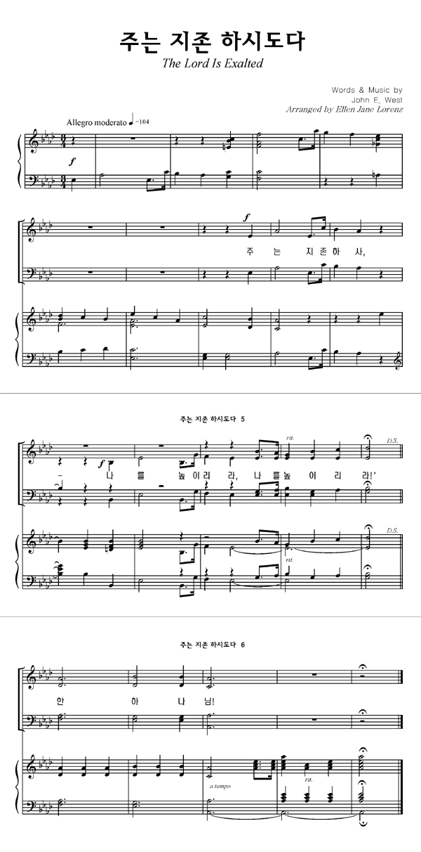 '주는 지존하시도다' 의 다른 악보형식