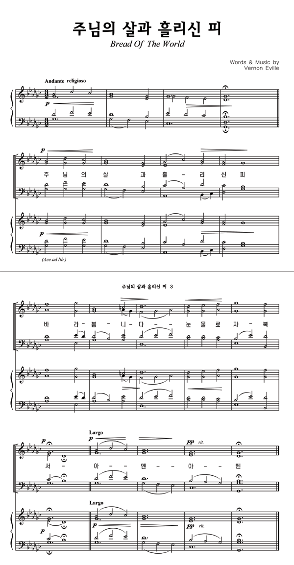 '주님의 살과 흘리신 피' 의 다른 악보형식