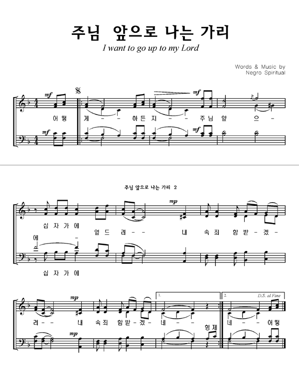 '주님 앞으로 나는 가리' 의 다른 악보형식