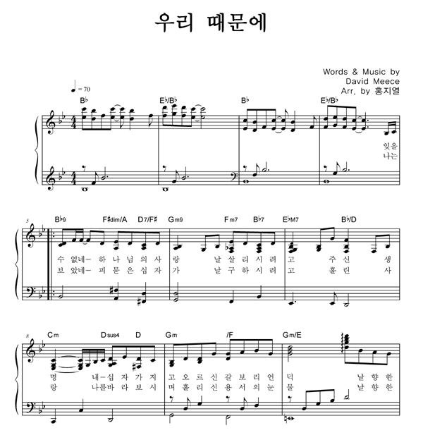 | 우리 때문에 | 성가 2부 + 피아노 반주 |