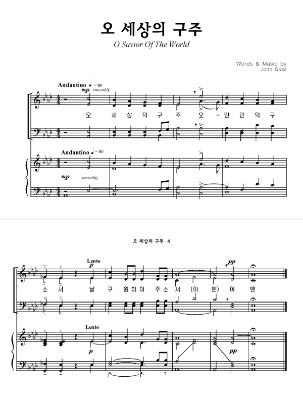 '오 세상의 구주' 의 다른 악보형식