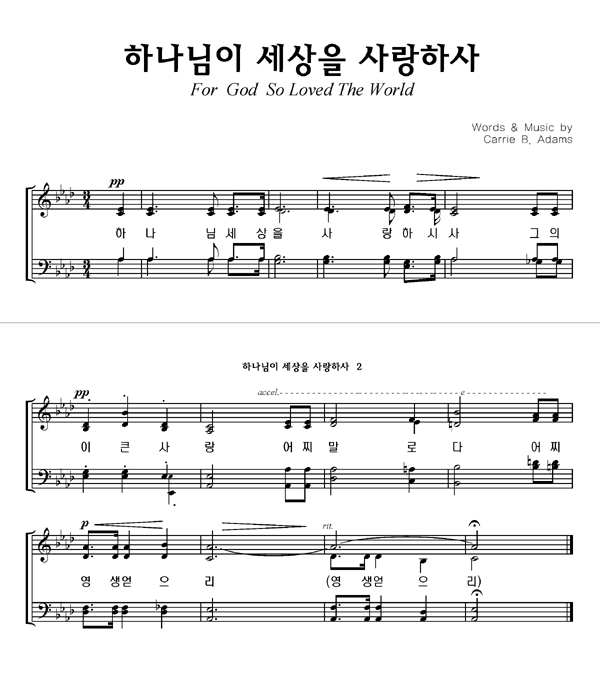 '하나님이 세상을 사랑하사' 의 다른 악보형식