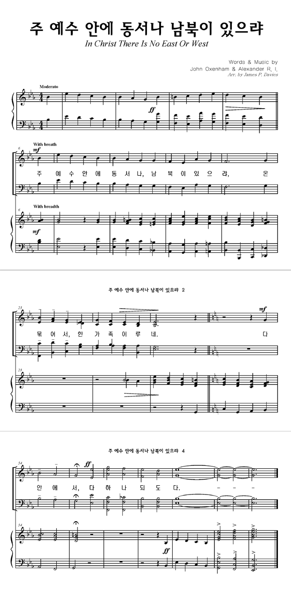 '주 예수 안에 동서나 남북이 있으랴' 의 다른 악보형식