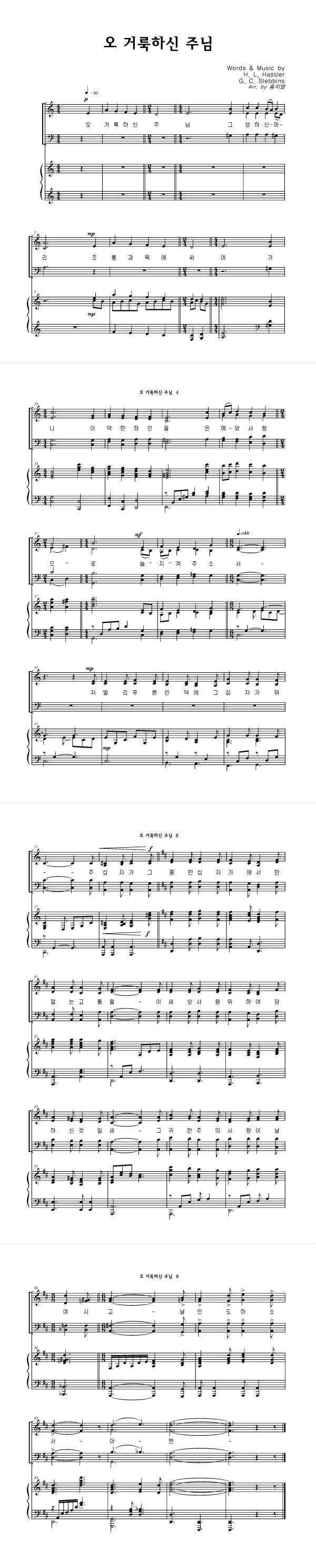 '오 거룩하신 주님' 의 다른 악보형식