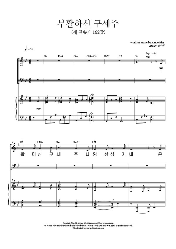 | 부활하신 구세주 (찬송가 162장) 큰글씨 | 성가 2부 + 피아노 반주 |