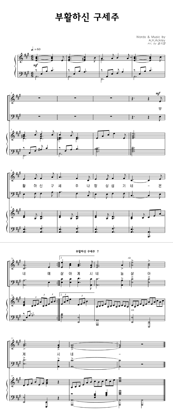 | 다시 사신 구세주 | 성가 4부 + 피아노 반주 |