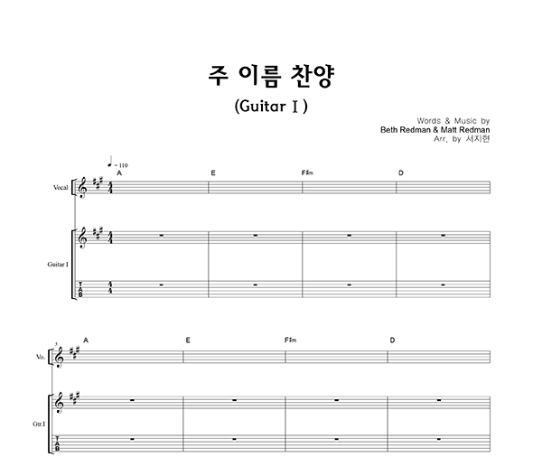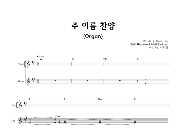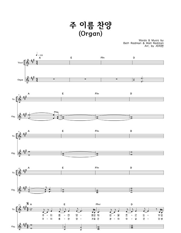 '주 이름 찬양' 의 다른 악보형식