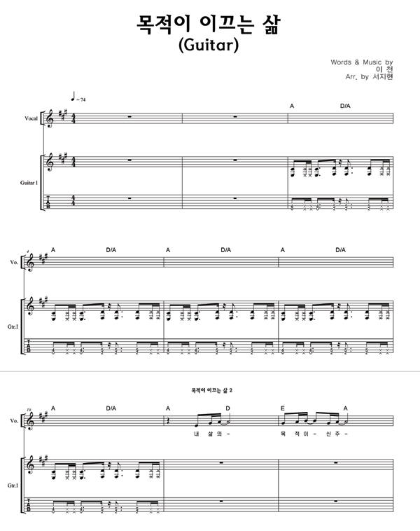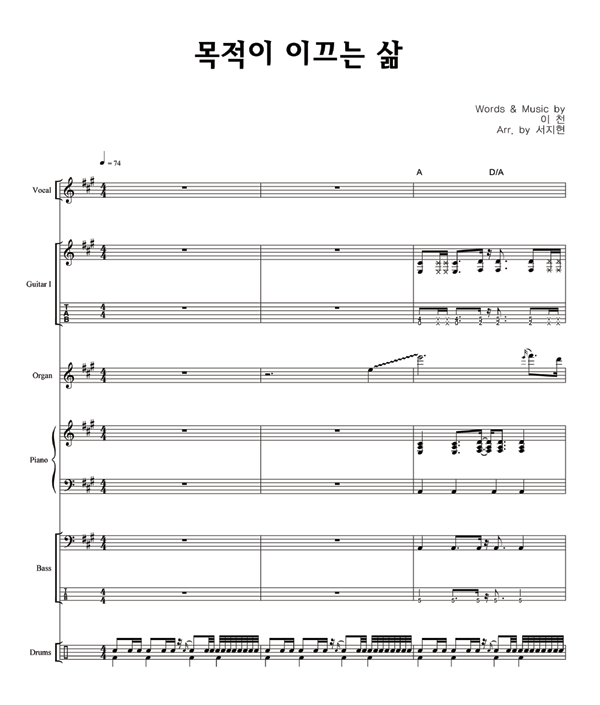 '목적이 이끄는 삶' 의 다른 악보형식