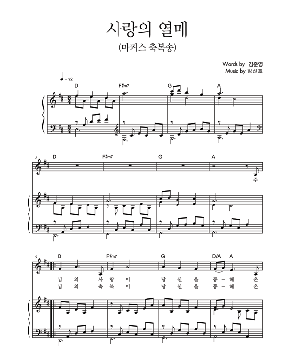 '사랑의 열매(마커스 축복송)' 의 다른 악보형식