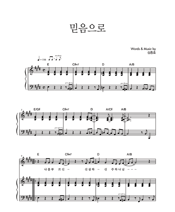 | 신령과 진정으로 | 성가 3부 + 피아노 반주 |