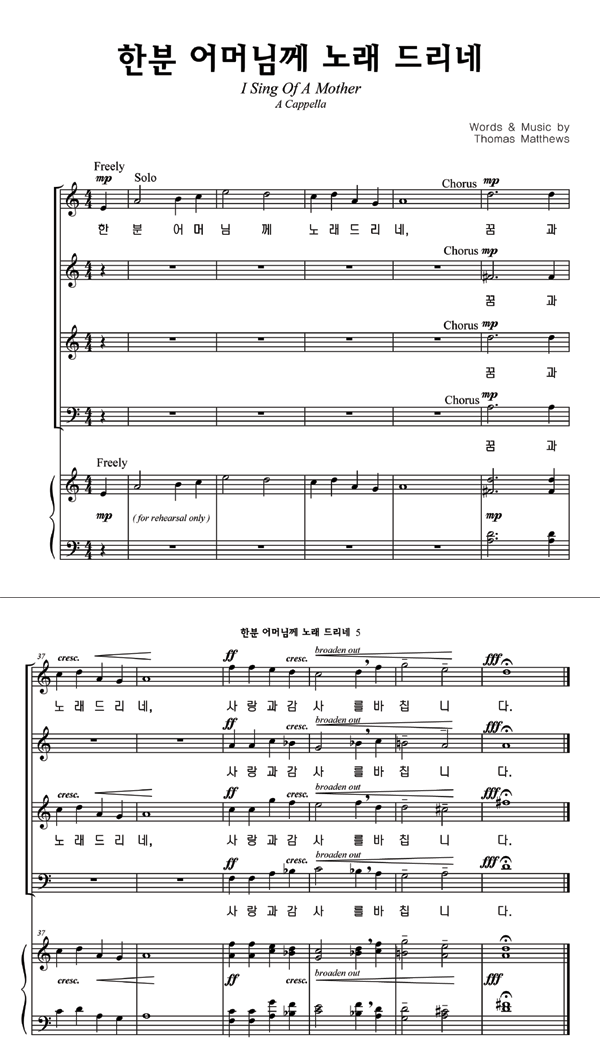 '한 분 어머님께 노래 드리네' 의 다른 악보형식