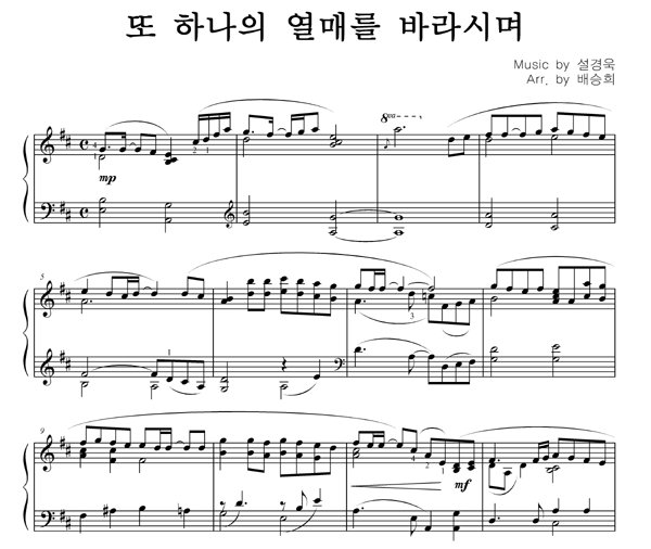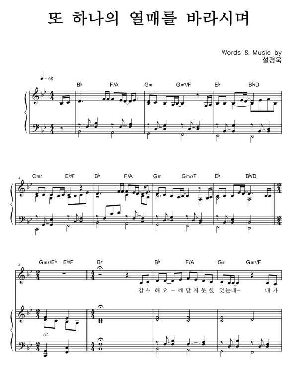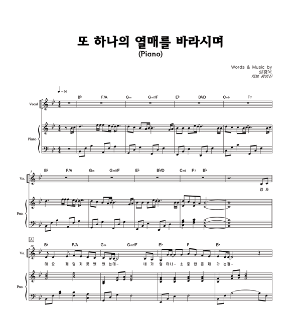 | 또 하나의 열매를 바라시며 | 성가 2부 + 피아노 반주 |