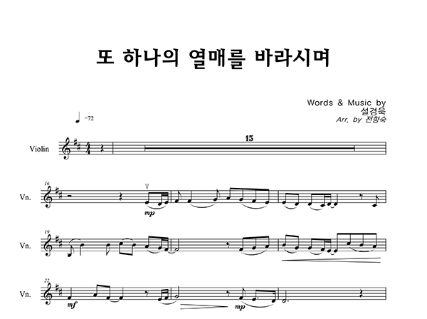 '또 하나의 열매를 바라시며' 의 다른 악보형식