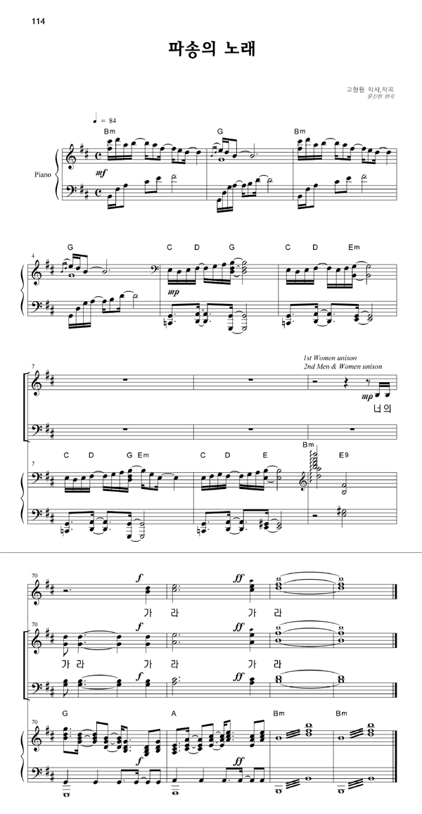 | 파송의 노래 | 성가 2부 + 피아노 반주 |