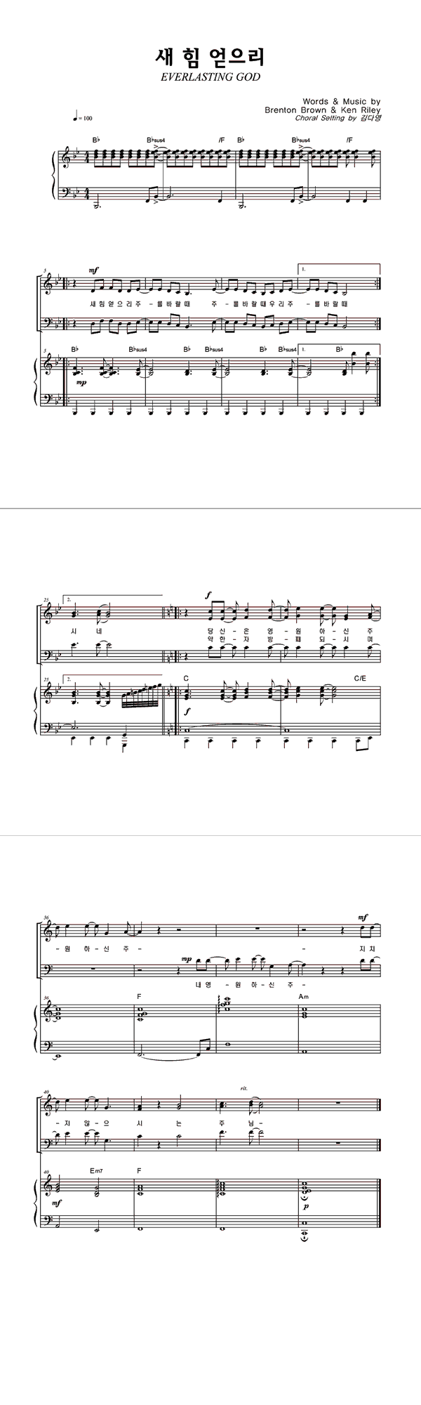 | 새 힘 얻으리 | 성가 3부 + 피아노 반주 |