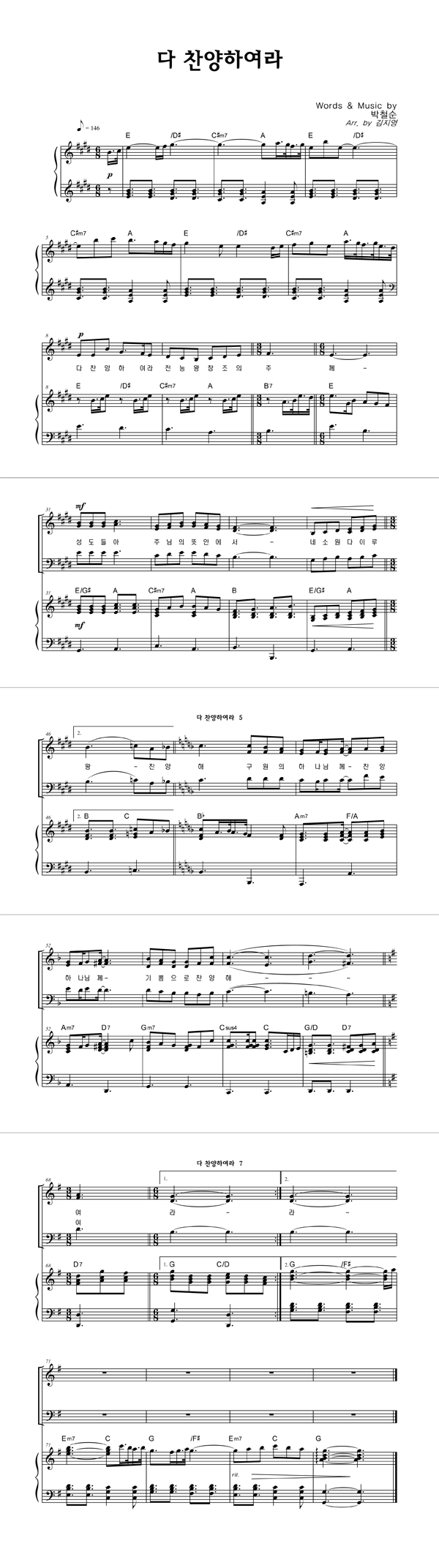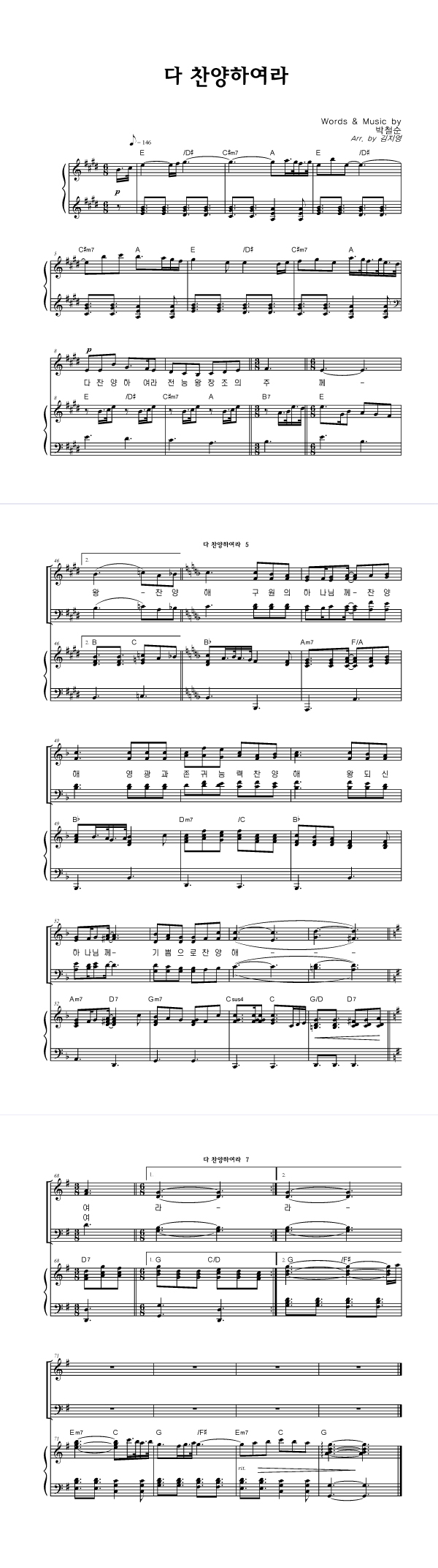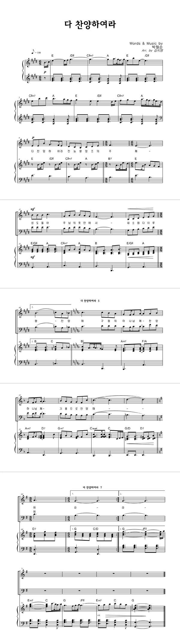 | 다 찬양하여라 | 성가 2부 + 피아노 반주 |