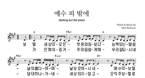 | 예수 피 밖에 | 성가 4부 + 피아노 반주 |