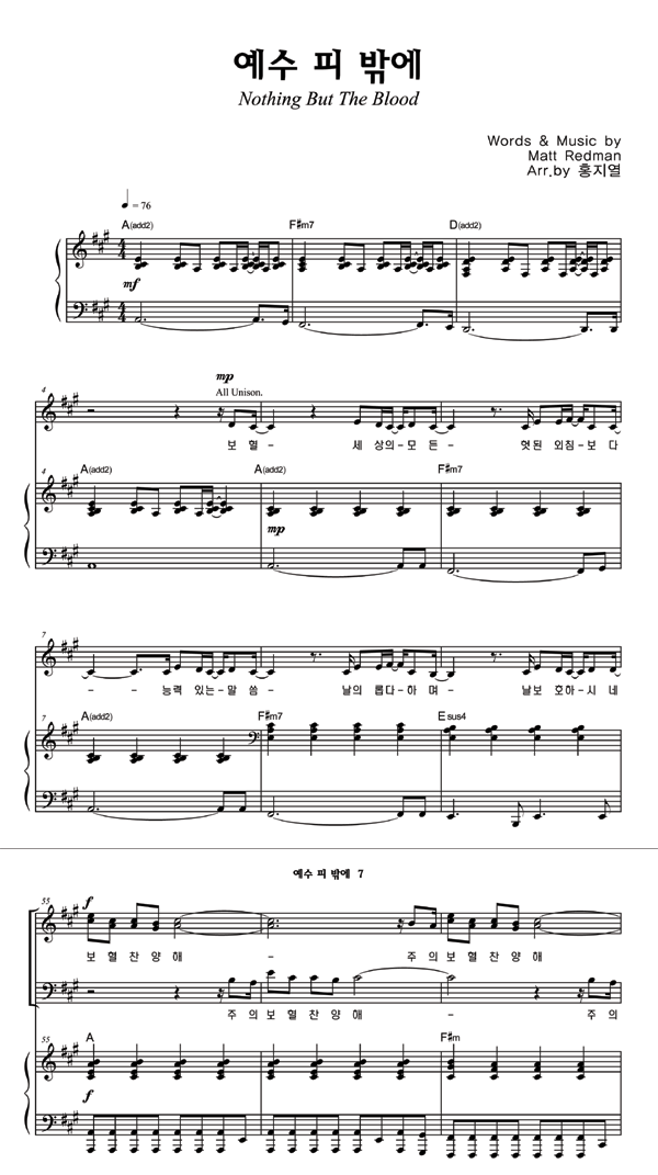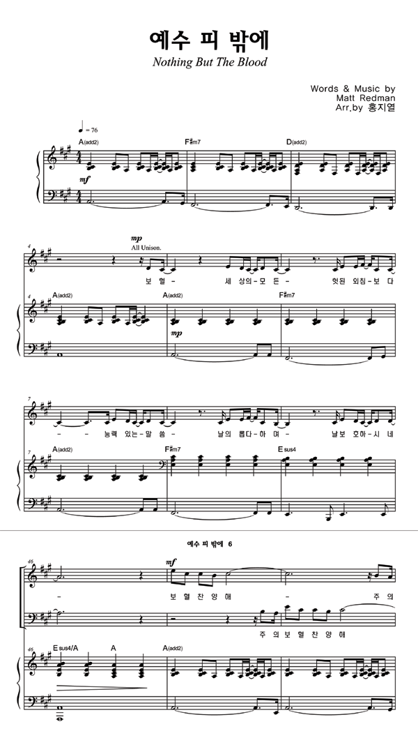 | 예수 피 밖에 | 성가 3부 + 피아노 반주 |