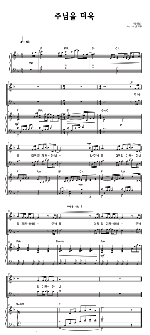 | 주님을 더욱 | 성가 2부 + 피아노 반주 |