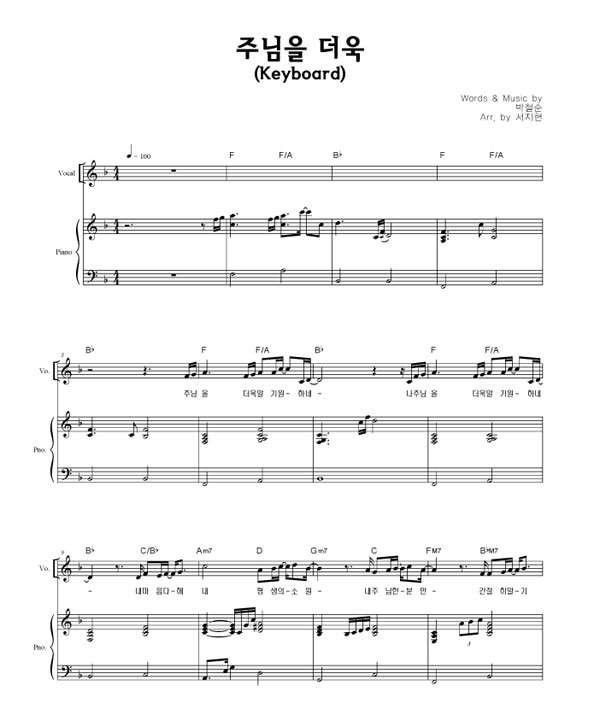 | 주님을 더욱 | 성가 2부 + 피아노 반주 |
