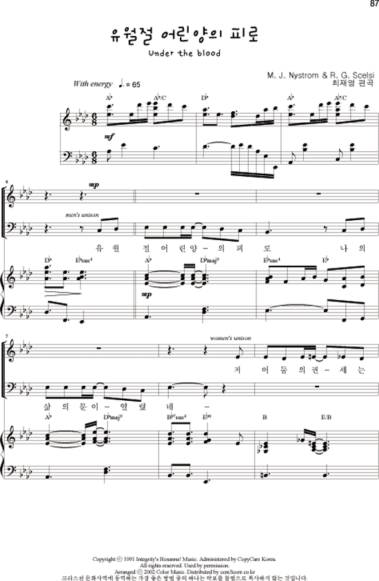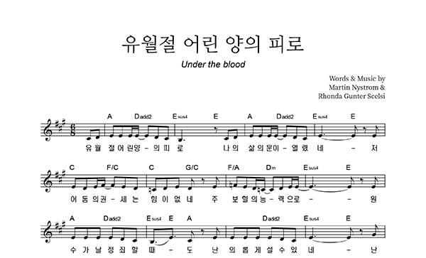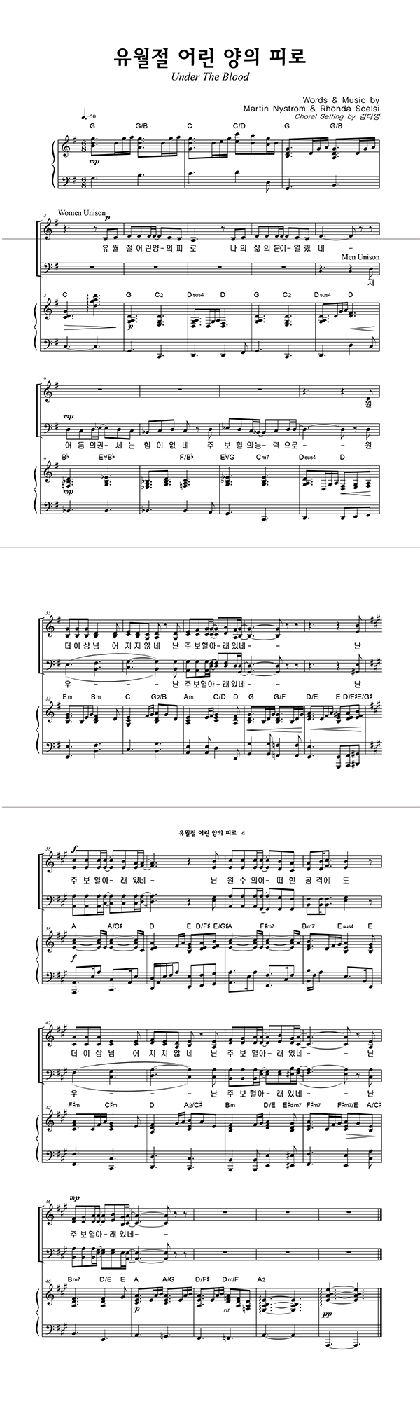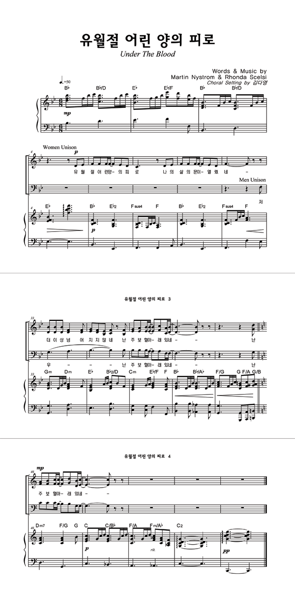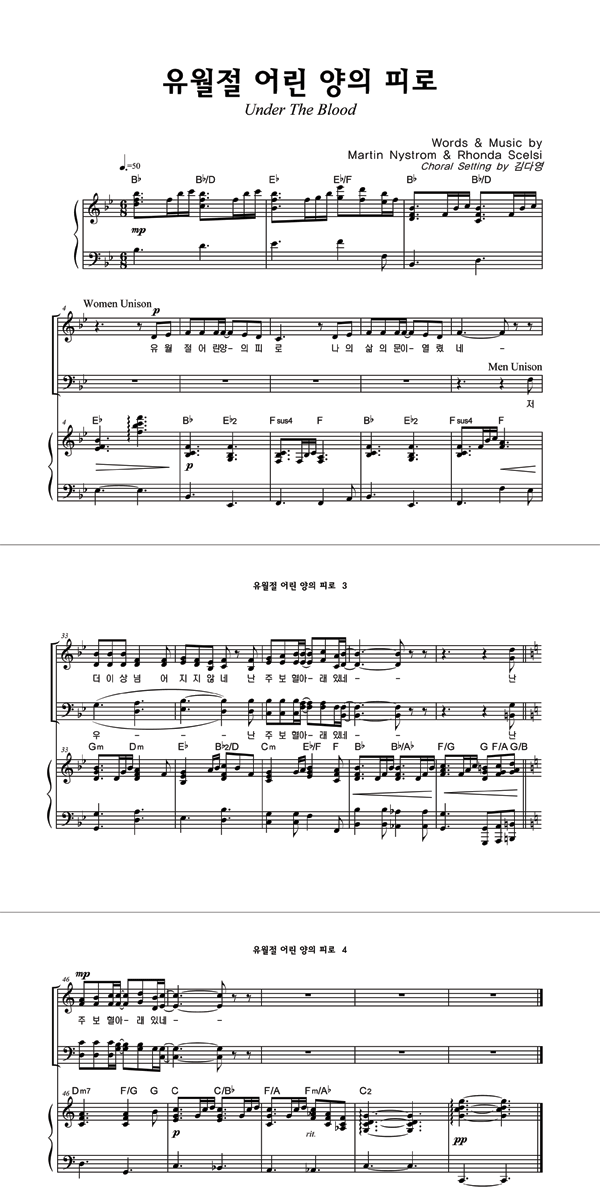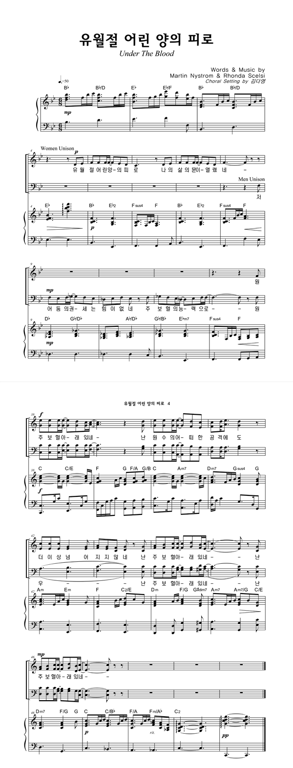 | 유월절 어린 양의 피로 | 성가 2부 + 피아노 반주 |