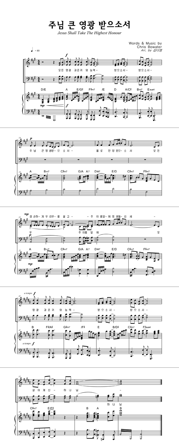 | 주님 큰 영광 받으소서 | 성가 3부 + 피아노 반주 |