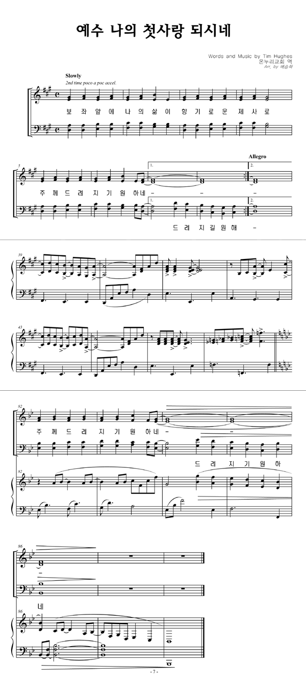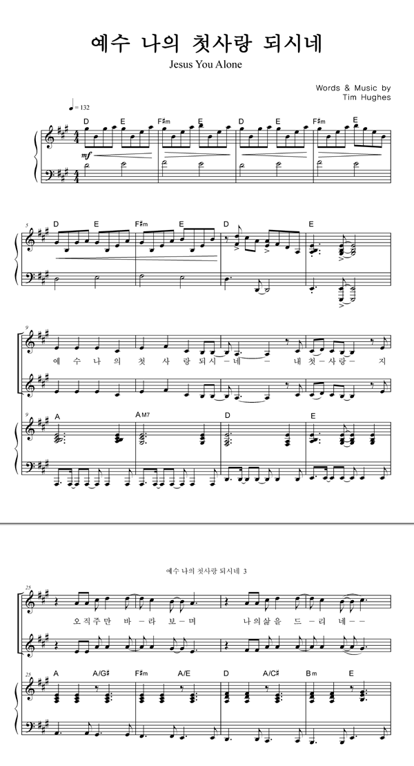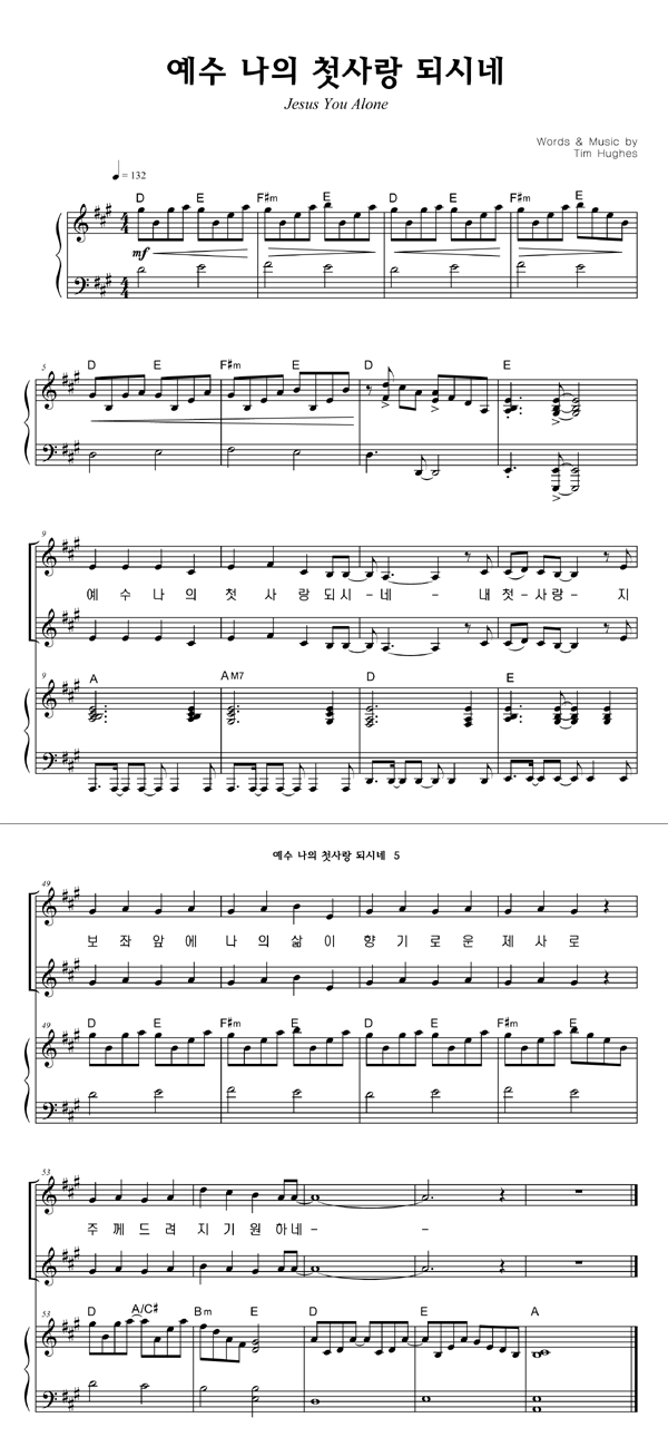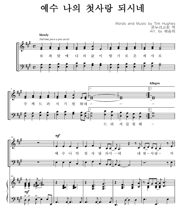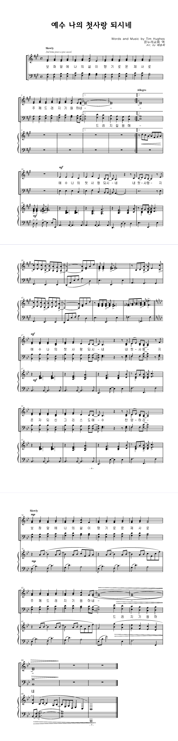 | 예수 나의 첫사랑 되시네 | 성가 4부 + 피아노 반주 |
