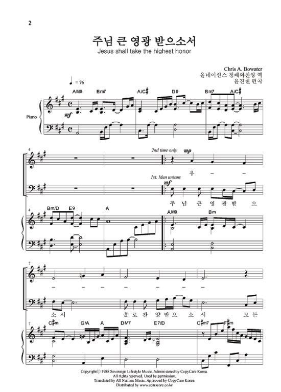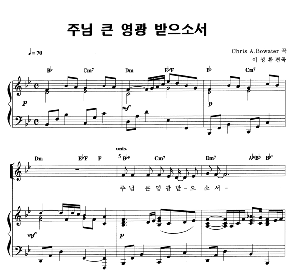 | 주님 큰 영광 받으소서 | 성가 2부 + 피아노 반주 |