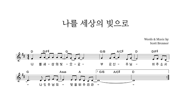 | 주의 사랑을 주의 선하심을 | 성가 2부 + 피아노 반주 |