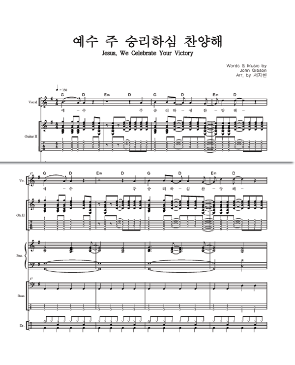 '예수 주 승리하심 찬양해' 의 다른 악보형식