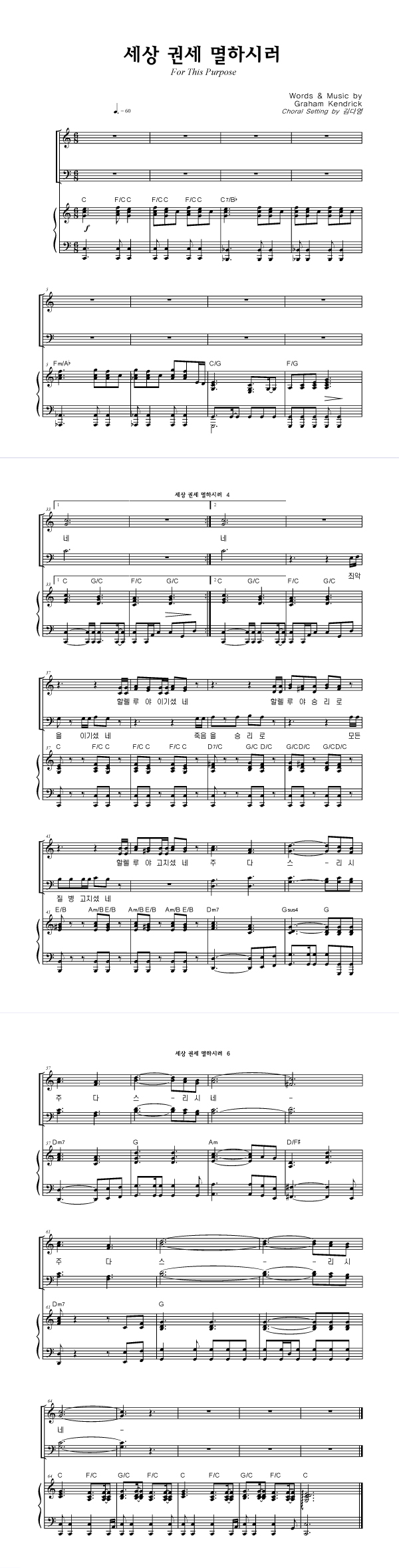 | 세상 권세 멸하시러 | 성가 4부 + 피아노 반주 |
