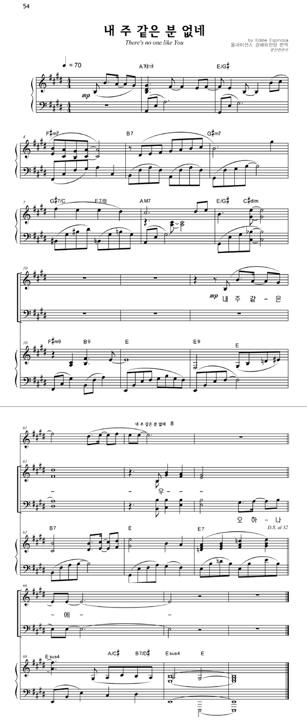 | 내 주 같은 분 없네 | 성가 4부 + 피아노 반주 |