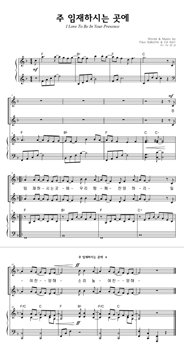 | 주 임재하시는 곳에 | 성가 2부 + 피아노 반주 |