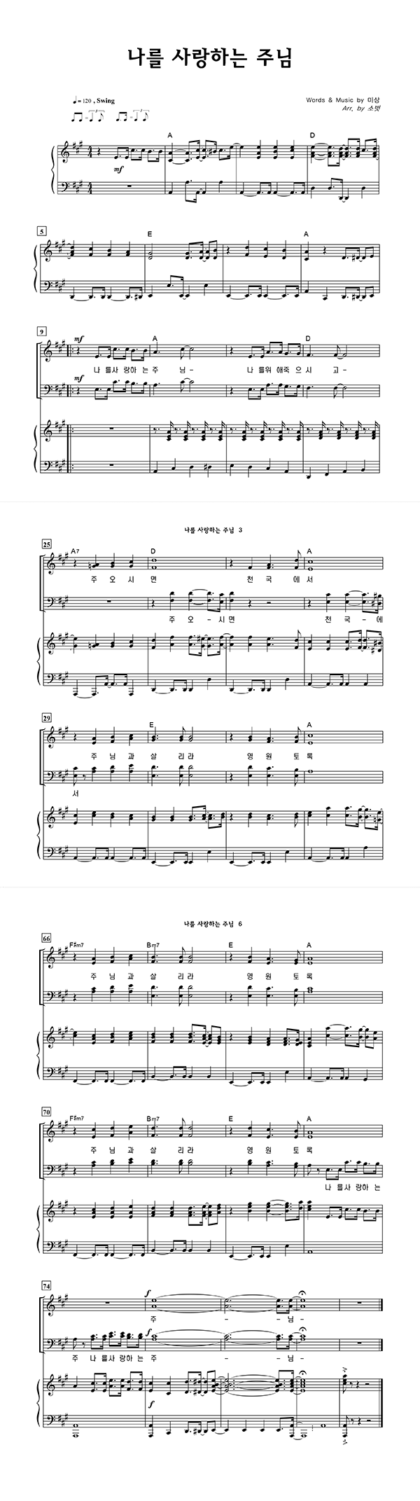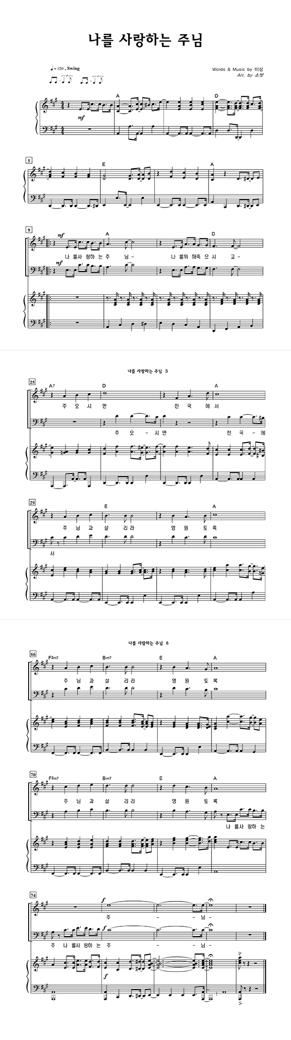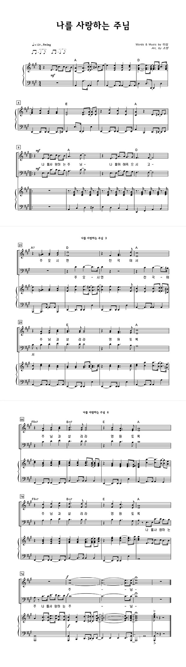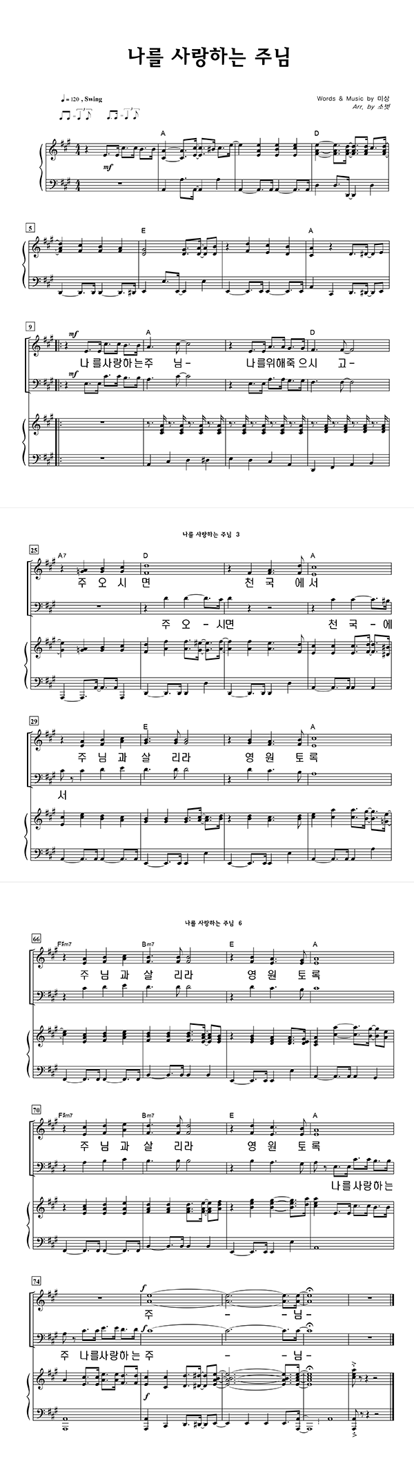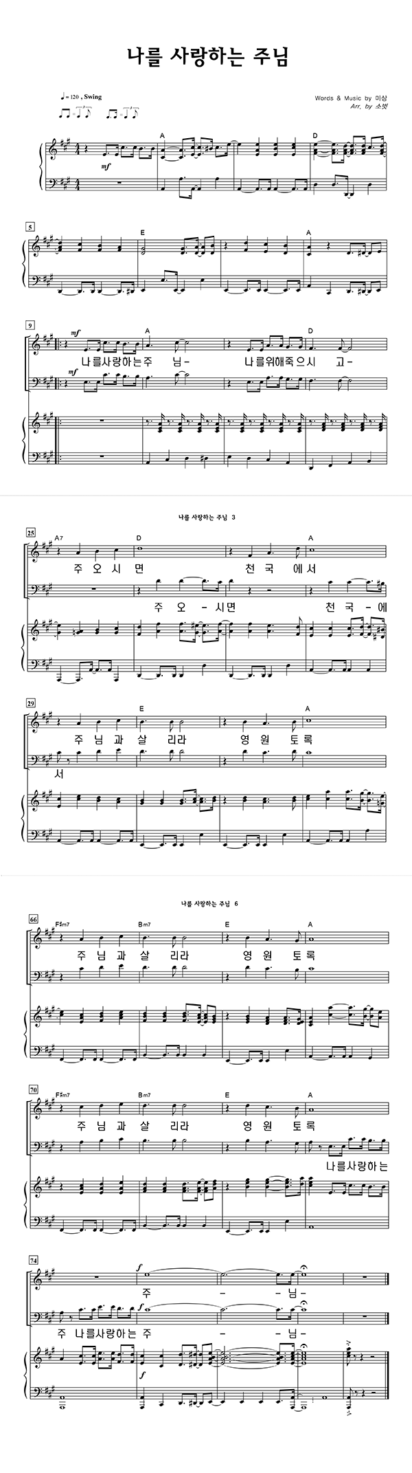 | 나를 사랑하는 주님 | 성가 3부 + 피아노 반주 |