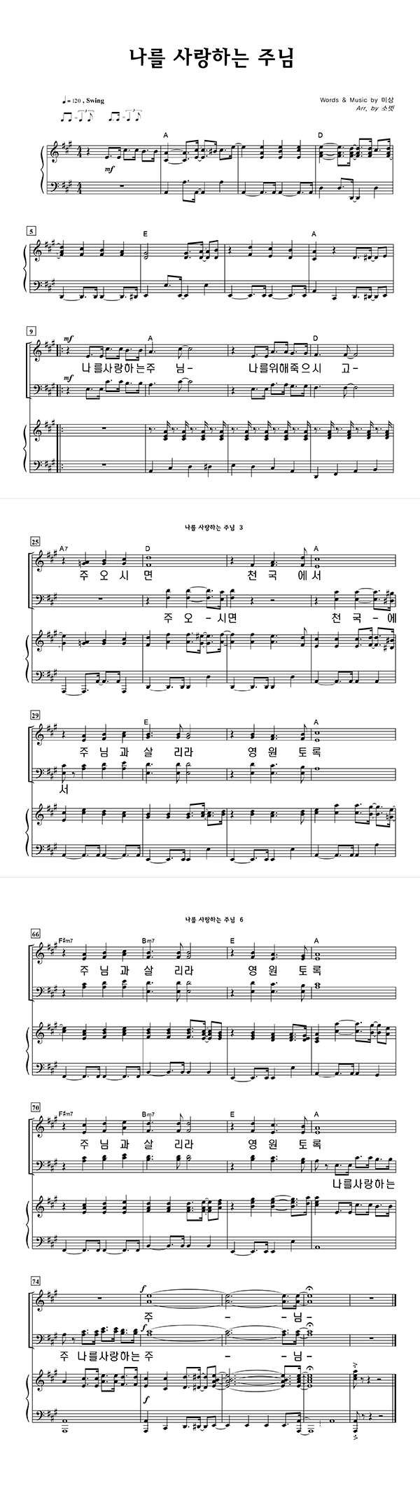 | 나를 사랑하는 주님 | 성가 2부 + 피아노 반주 |
