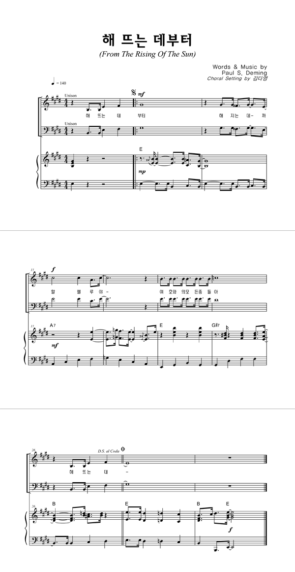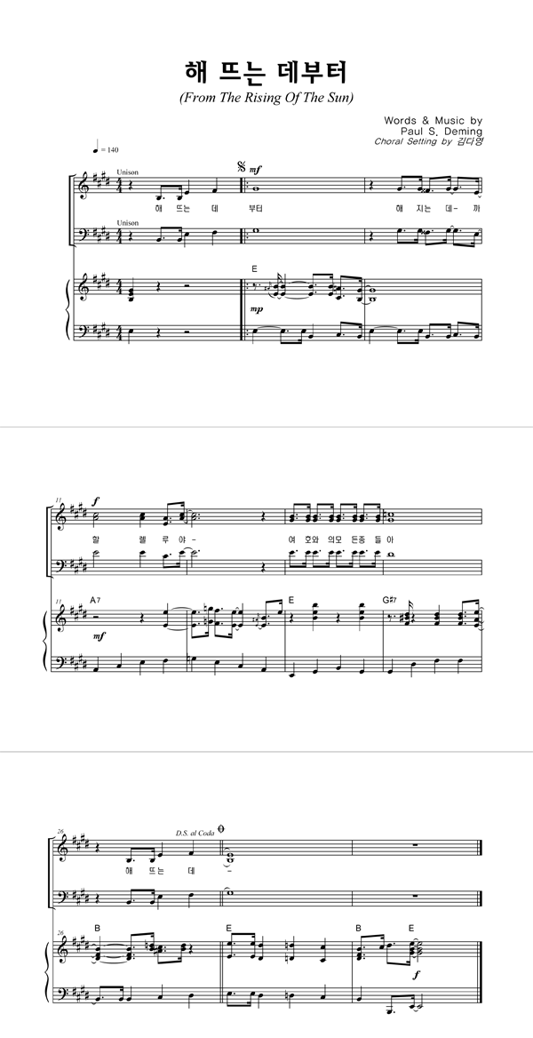 | 해 뜨는데 부터 | 성가 4부 + 피아노 반주 |