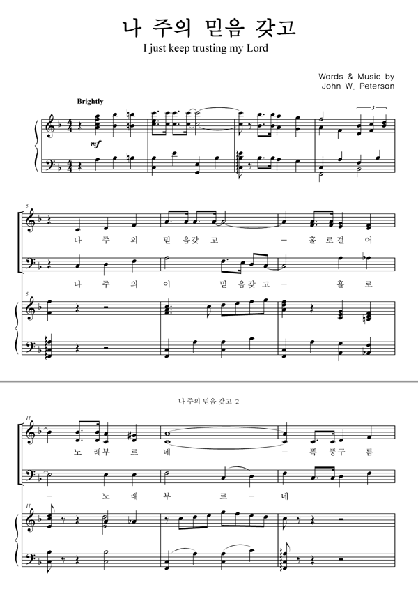 | 나 기뻐하리 | 성가 2부 + 피아노 반주 |