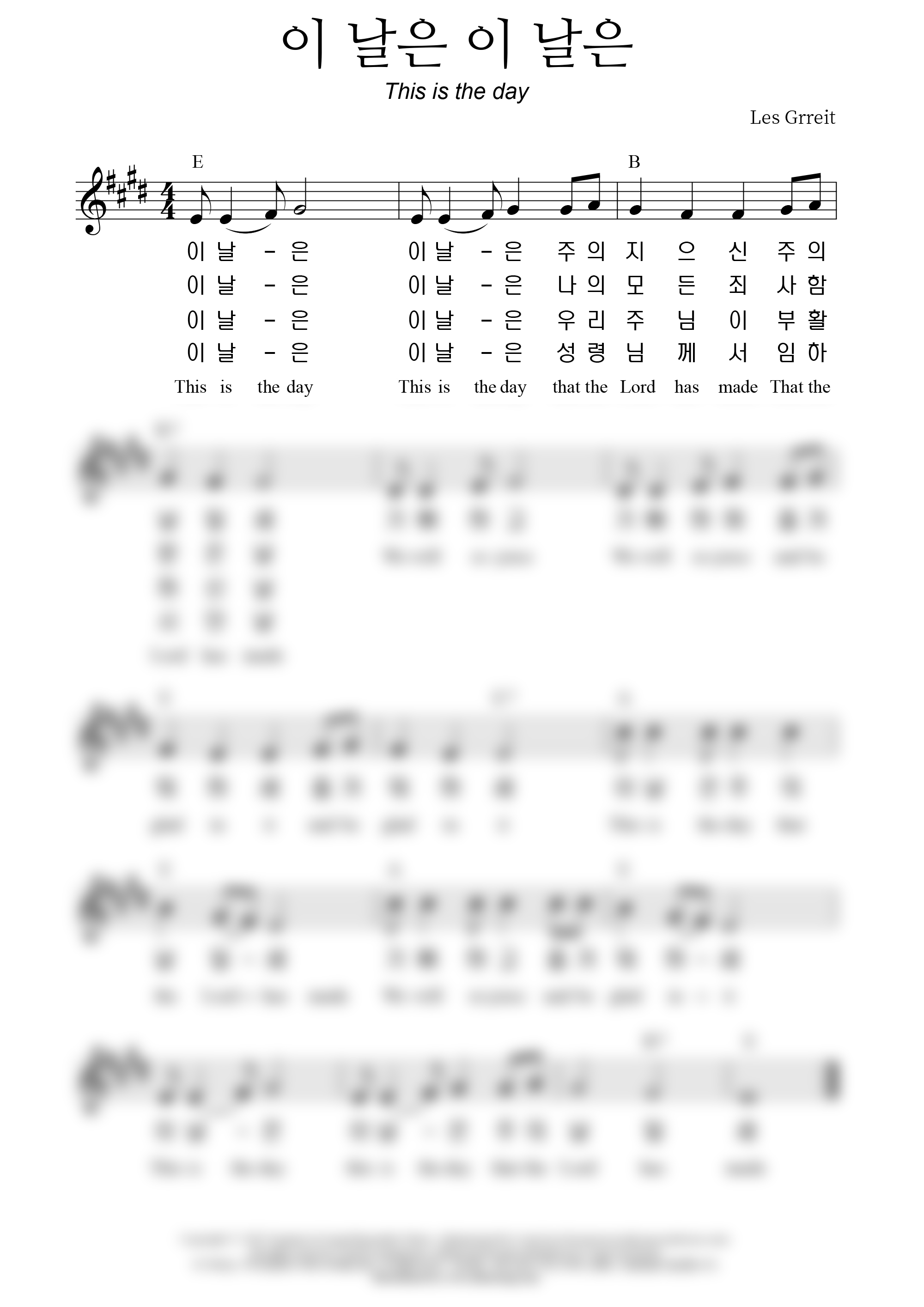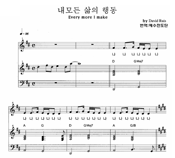 | 주의 이름 높이며 큰글씨 | 성가 3부 + 피아노 반주 |
