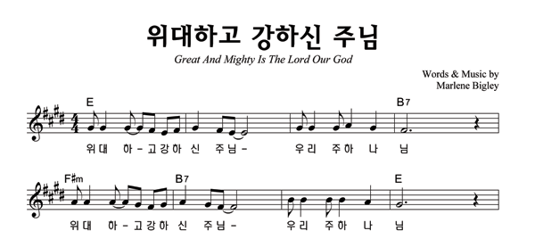 | 주의 이름 높이며 큰글씨 | 성가 2부 + 피아노 반주 |
