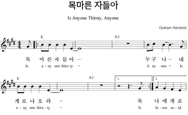 | 거룩하신 하나님 | 성가 2부 + 피아노 반주 |