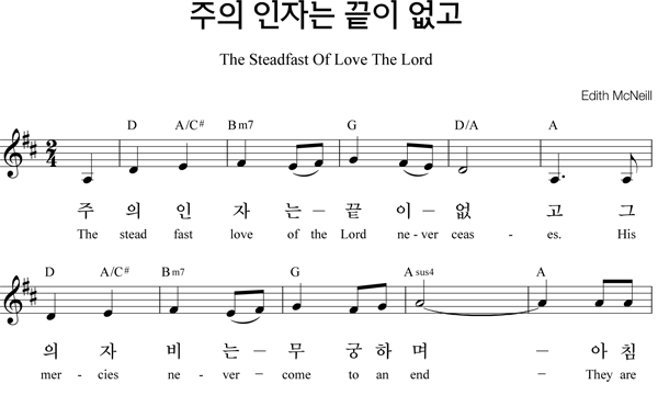 | 주의 사랑을 주의 선하심을 | 성가 2부 + 피아노 반주 |
