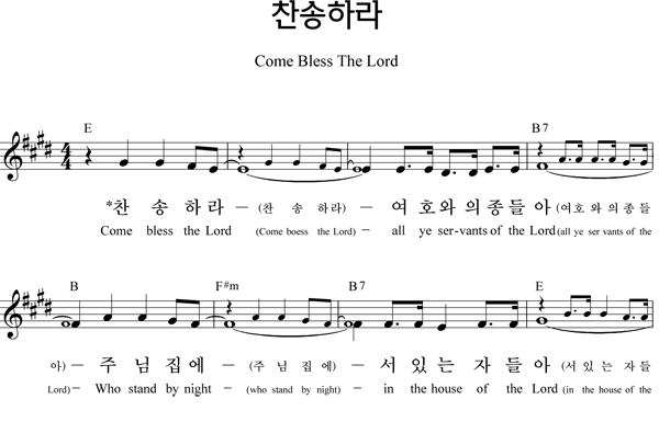 | 주의 이름 송축하리 | 성가 4부 + 피아노 반주 |