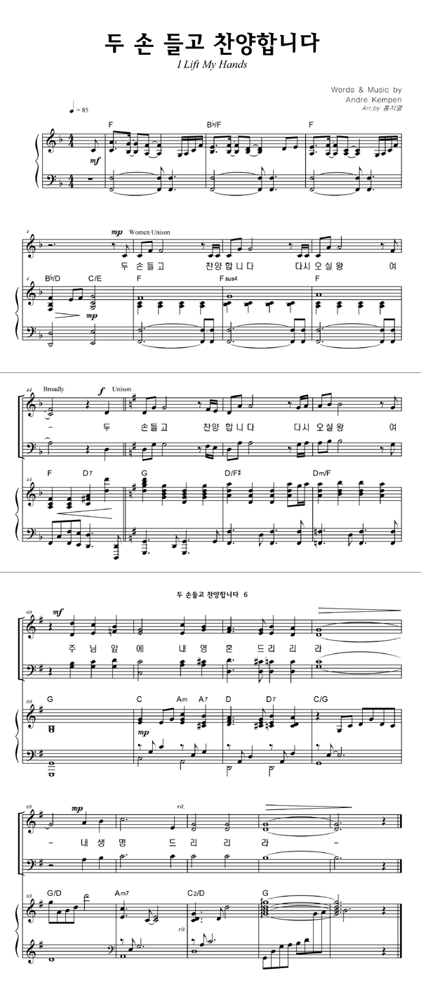 | 춤추며 찬양해 | 성가 2부 + 피아노 반주 |